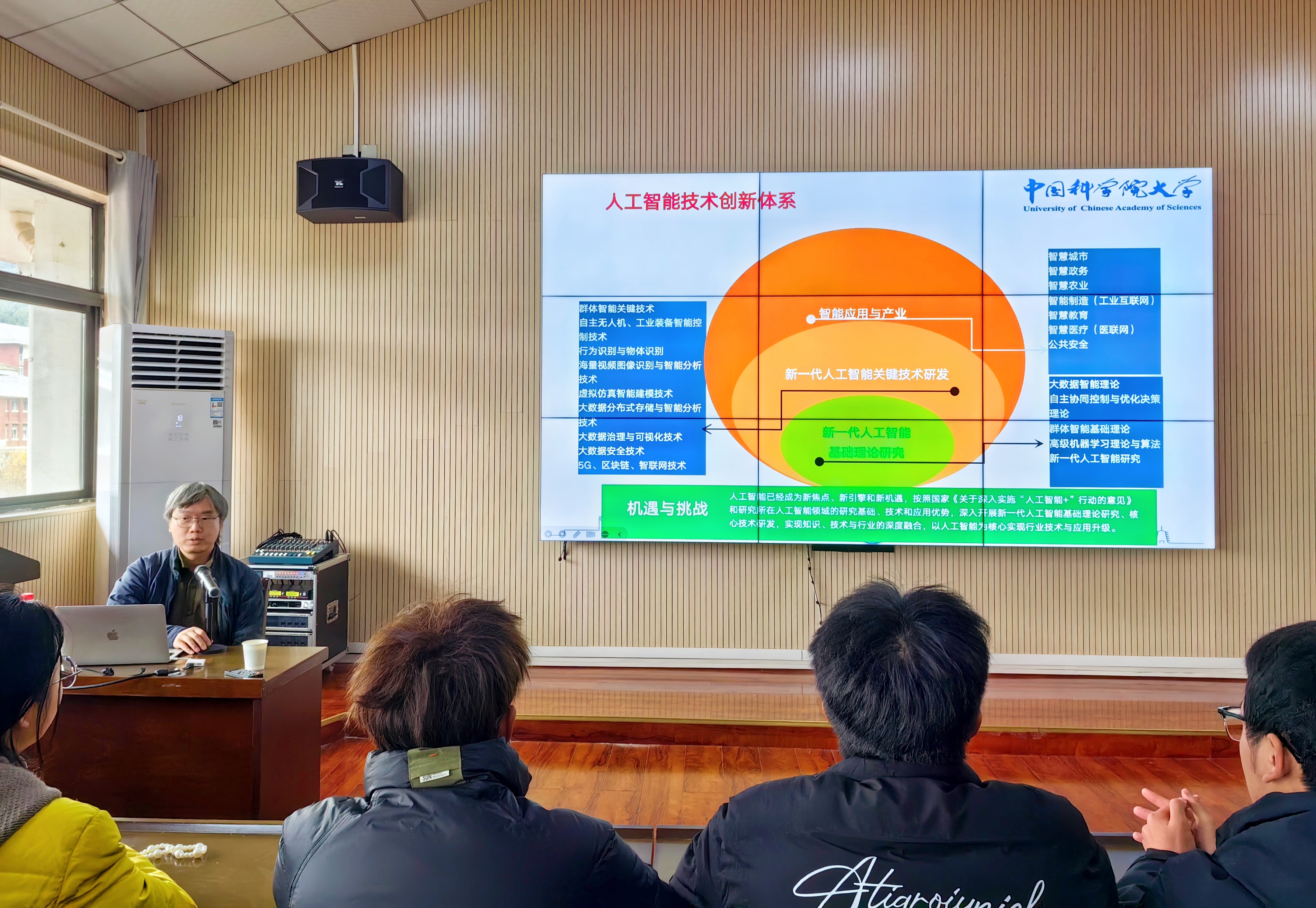 高峻嘉副教授以“从感知智能到认知智能的范式转变”为主题,系统的介绍了人工智能从感知智能向认知智能演进的关键路径与发展趋势。为了帮助AI技术实现向认知智能的跨越,报告提出了“价值驱动AGI”理念,并且在报告中强调了从数据驱动转向因果与价值驱动,构建具备常识推理、自主决策和伦理判断能力的通用智能体。同时在报告中高峻嘉副教授以DeepSeek R1等模型为例子,为大家分析了强化学习、思维链推理、MoE架构等技术在提升模型推理性能与降低成本方面的突破。最后报告指出,人工智能正在从工具性“感知智能”迈向具备价值判断与认知能力的“认知智能”,推动人机共融的智能文明建设。