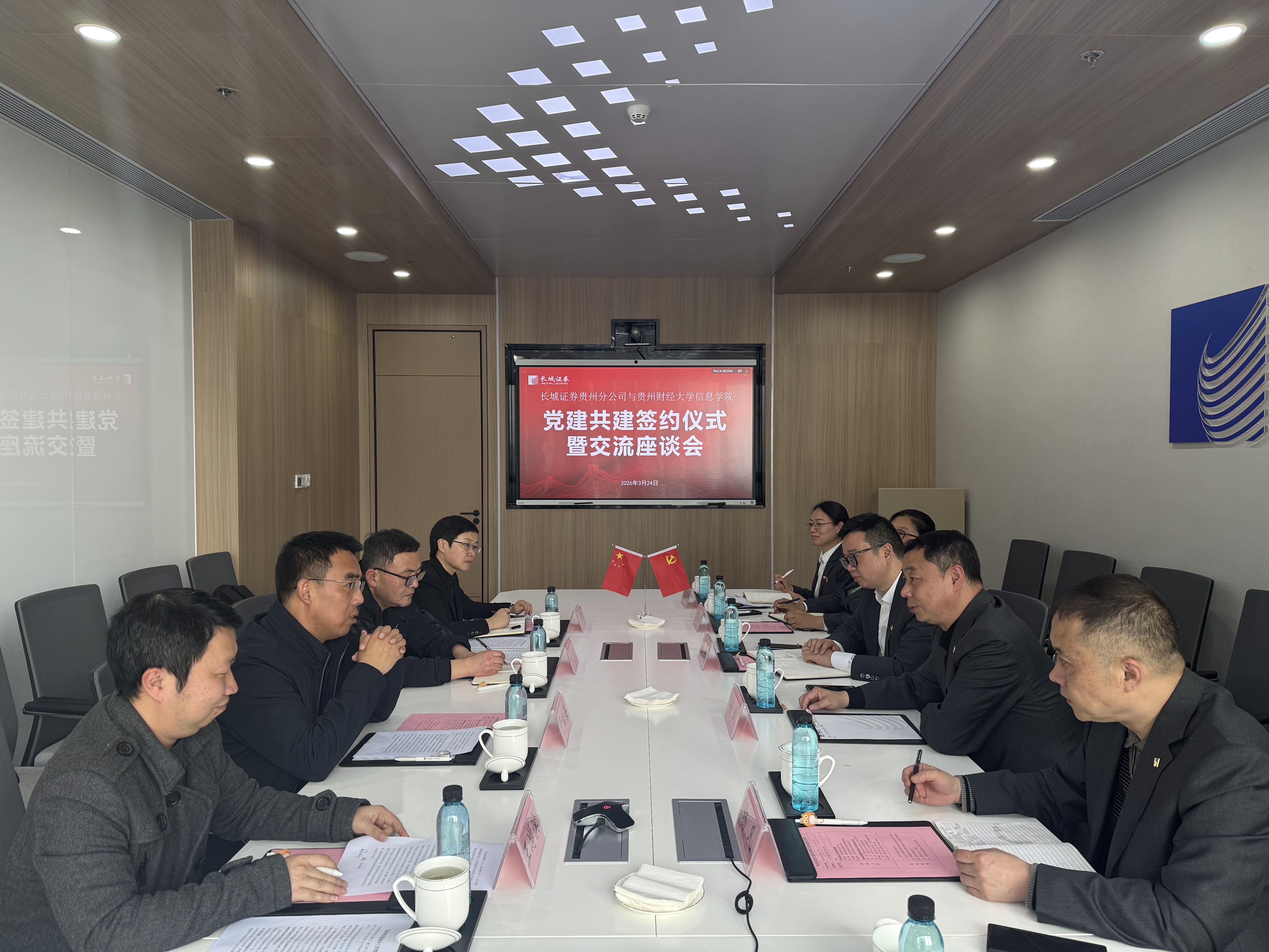 本网讯:(赵里红 图文报道)为进一步深化校企合作,近日,信息学院与长城证券贵州分公司开展校企党建共建暨访企拓岗交流活动,长城证券股份有限公司贵州分公司总经理、党支部书记徐剑、信息学院党委书记于桂海及相关人员参会。
