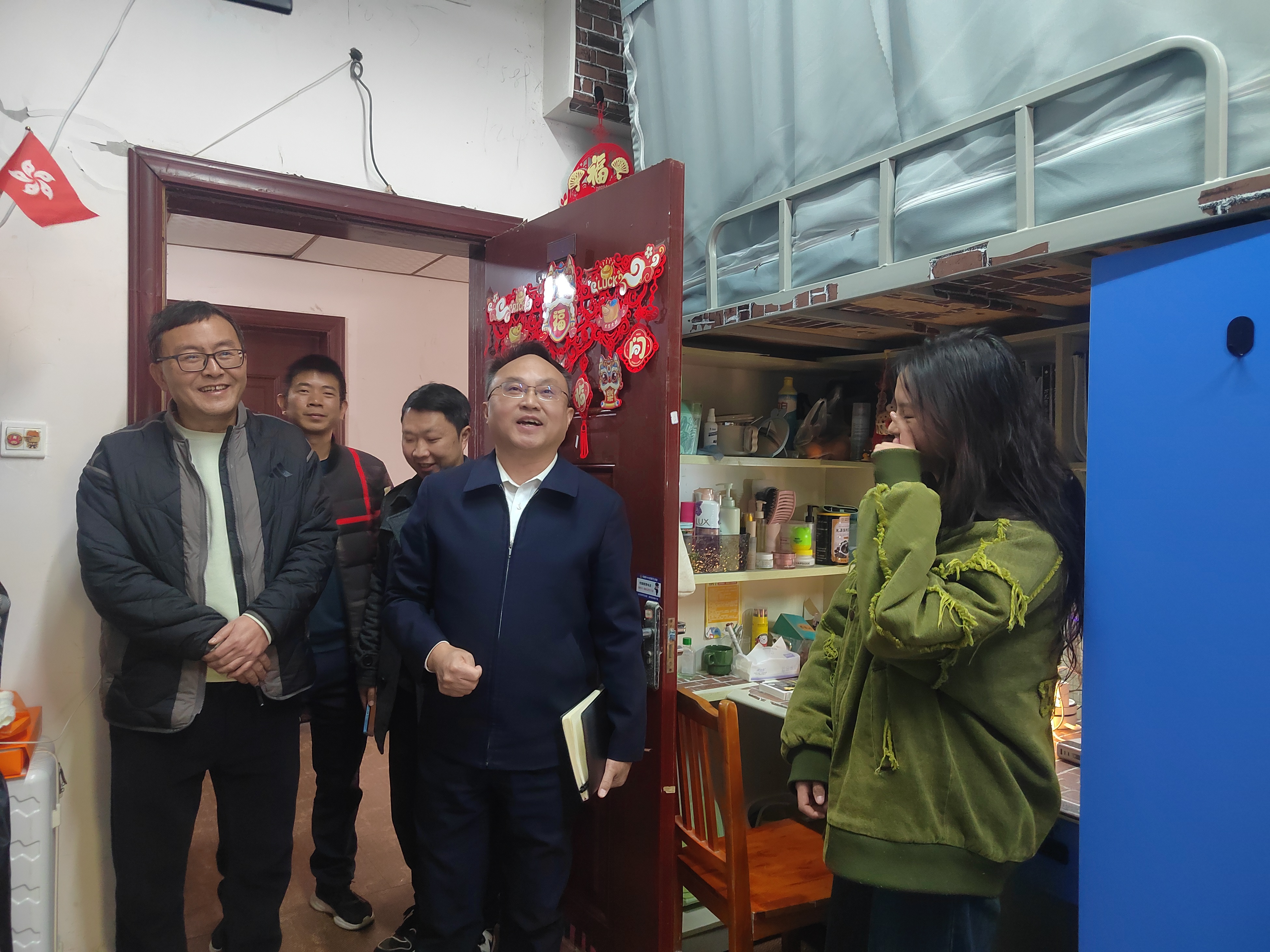 李烨深入学生宿舍,仔细察看住宿环境、设施配备以及消防安全情况,与同学们亲切交谈,询问大家的学业进展、生活状况,听取同学们的意见和建议,并叮嘱同学们要合理安排时间,注重身心健康,营造积极向上的宿舍文化氛围。