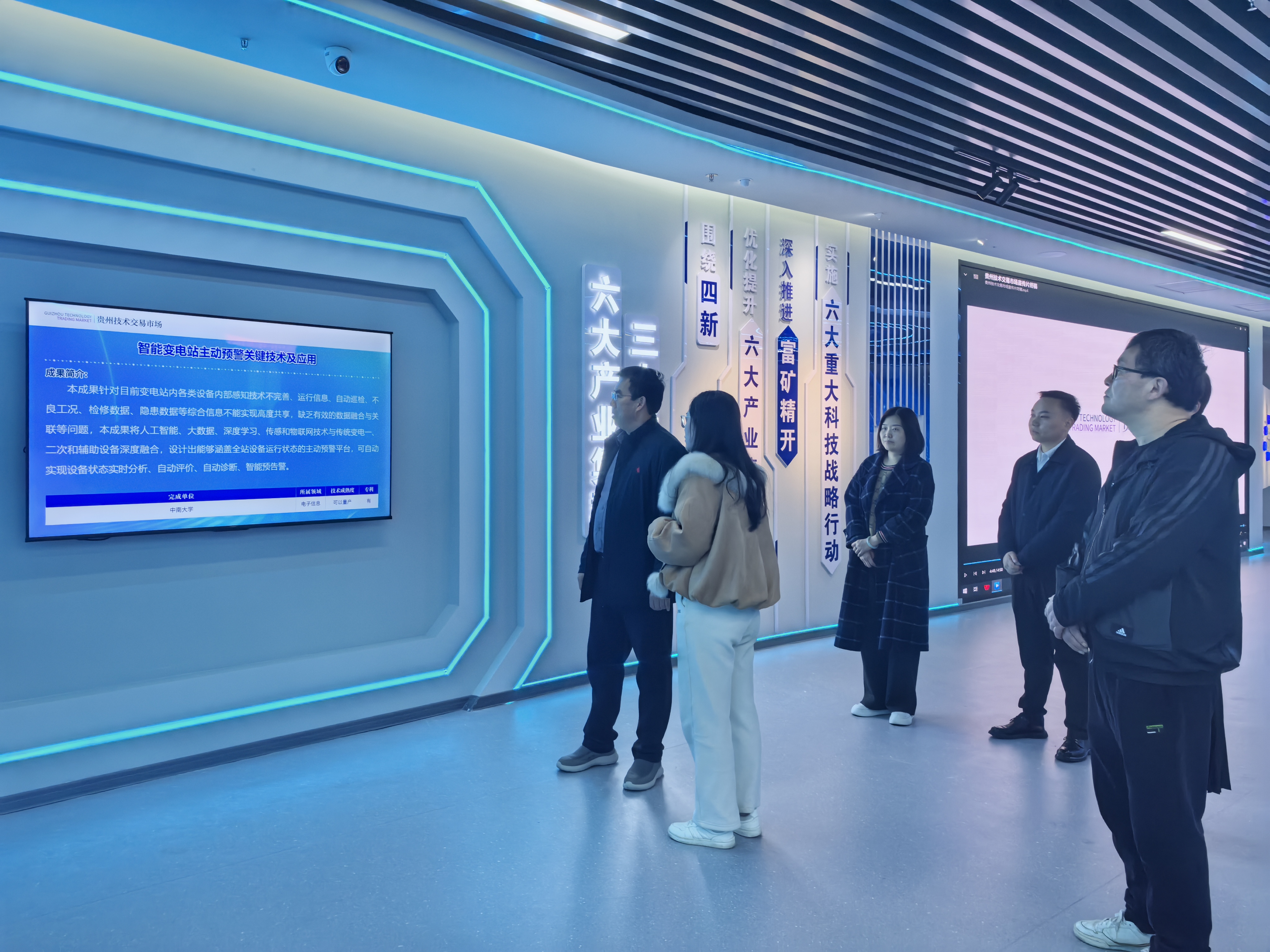 在公司领导陪同下,学院一行参观了科学城科技园区技术交易市场、创新创业孵化载体等展区,何从跃详细介绍了园区基本情况、发展定位、企业经营状况及发展规划。